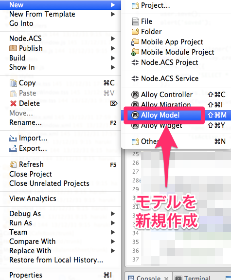 - モデルを生成して (Alloy.createModel(モデル名))